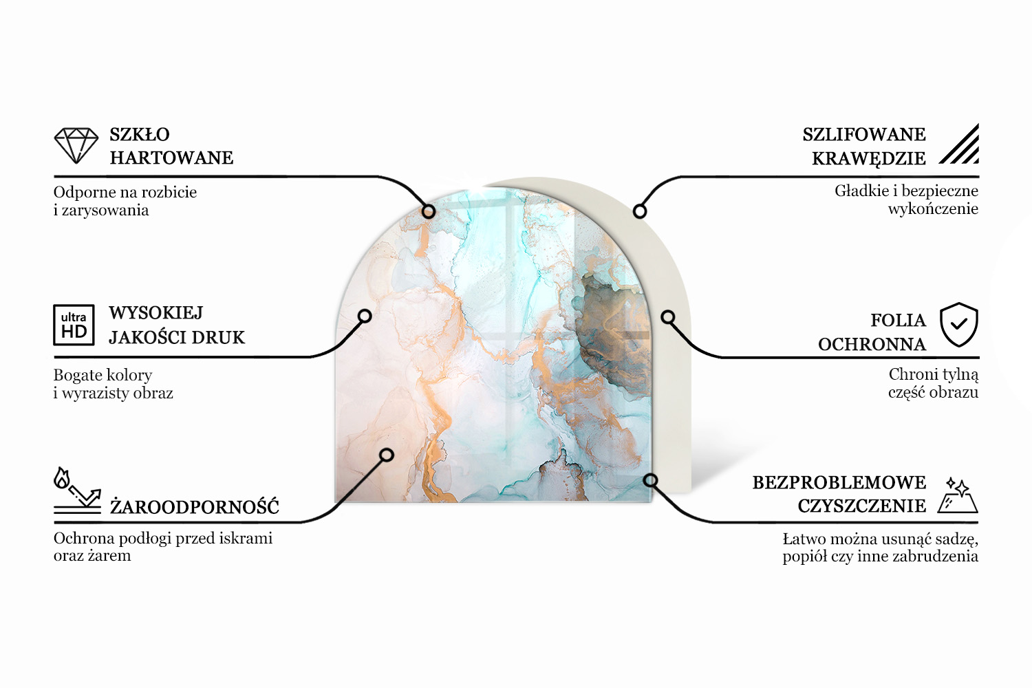 Zastosowanie szkła hartowanego gwarantuje odporność na wysokie temperatury oraz uszkodzenia mechaniczne, co przekłada się na długą żywotność produktu. Podkładka została zaprojektowana i wykonana w Polsce z dbałością o każdy szczegół, objęta gwarancją producenta oraz krótkim terminem realizacji.