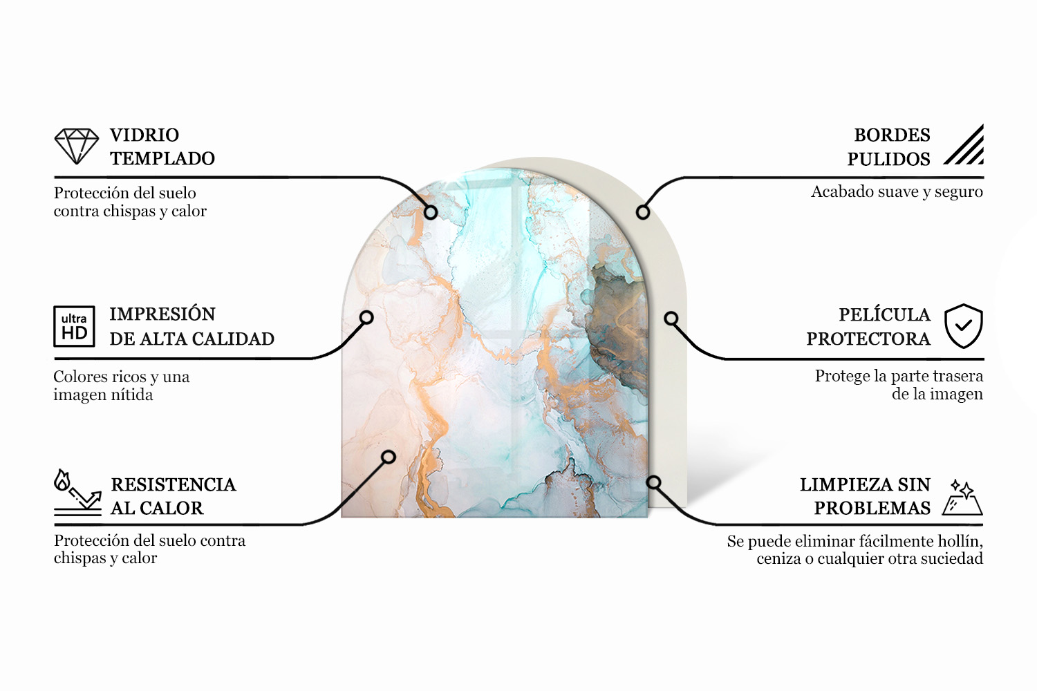 El Protector suelo para estufa de leña semicircular en color “Color del mar” es una moderna base protectora para chimeneas que combina un diseño estético con una funcionalidad excepcional. Fabricada en vidrio templado de alta durabilidad y adornada con una impresión nítida y vibrante, protege eficazmente el suelo contra las altas temperaturas, las chispas y la suciedad generada por el uso diario de chimeneas o estufas de leña tipo "koza". Su elegante forma semicircular se adapta perfectamente a los dispositivos exentos, creando un conjunto visualmente coherente y sofisticado en tu salón.