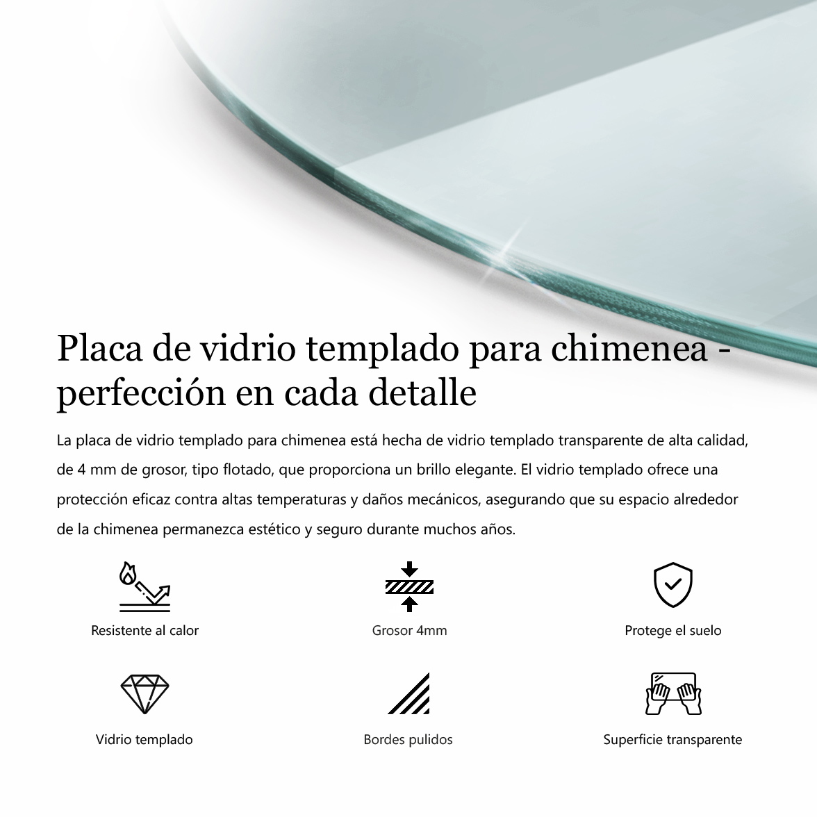Gracias a su superficie de cristal lisa, la placa refleja la luz del fuego creando una atmósfera mágica y brillante. Es una solución ideal para proteger el suelo contra el calor y posibles daños mecánicos sin renunciar al buen gusto. El diseño redondo del Protector suelo para estufa de leña transparente asegura que la pieza se convierta en un foco de atención decorativo, manteniendo el orden y la elegancia. Elige entre nuestros diversos tamaños disponibles y disfruta de un entorno seguro, estable y visualmente impactante. Fabricado con atención a cada detalle, es el complemento perfecto para resaltar el carácter sofisticado de tu espacio vital.